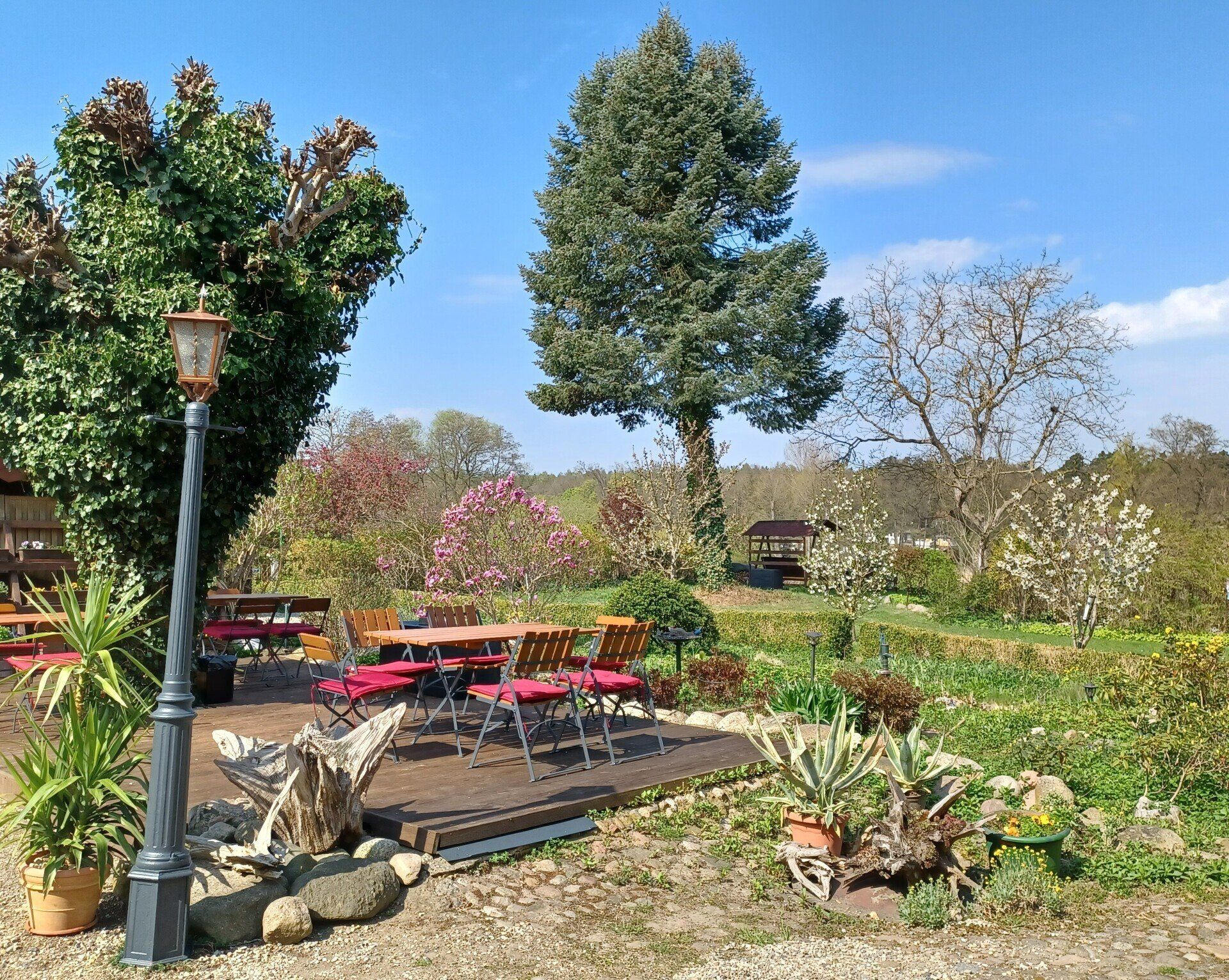Auf der Pensionsetage befindet sich eine Gästeküche mit kleiner Minibar zur gemeinsamen Nutzung. Im Garten stehen für unsere Gäste verschiedene Sitzmöglichkeiten, eine Grillterrasse sowie ein Spielplatz zur Verfügung.